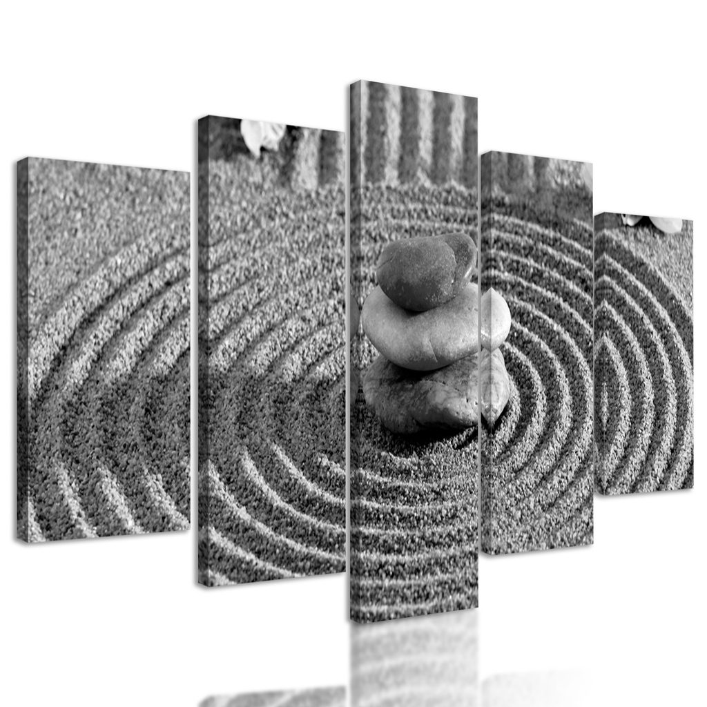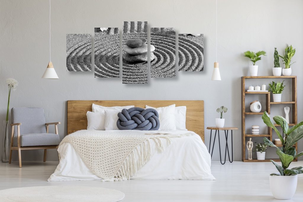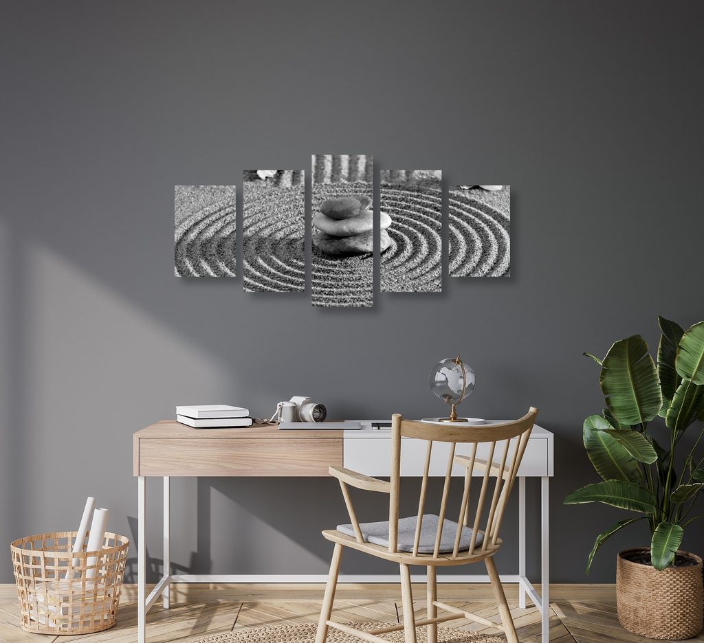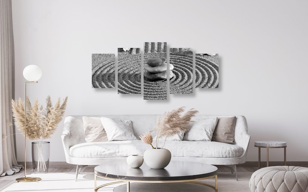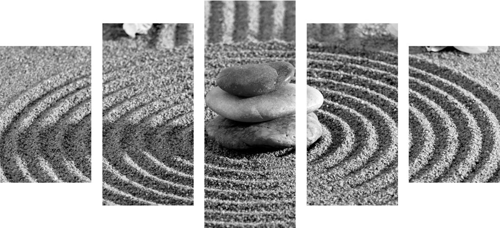 5-deilny obraz balanc v Zen záhrade v čiernobielom prevedení