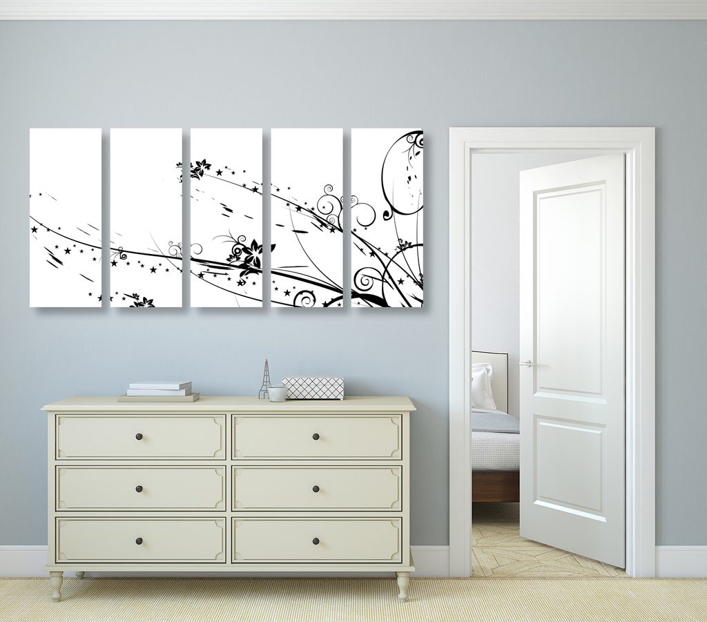 5-dielny obraz čarovná krajina v čiernobielom prevedení