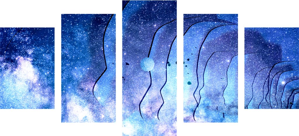 5-dielny obraz neznáma planéta v čiernobielom prevedení