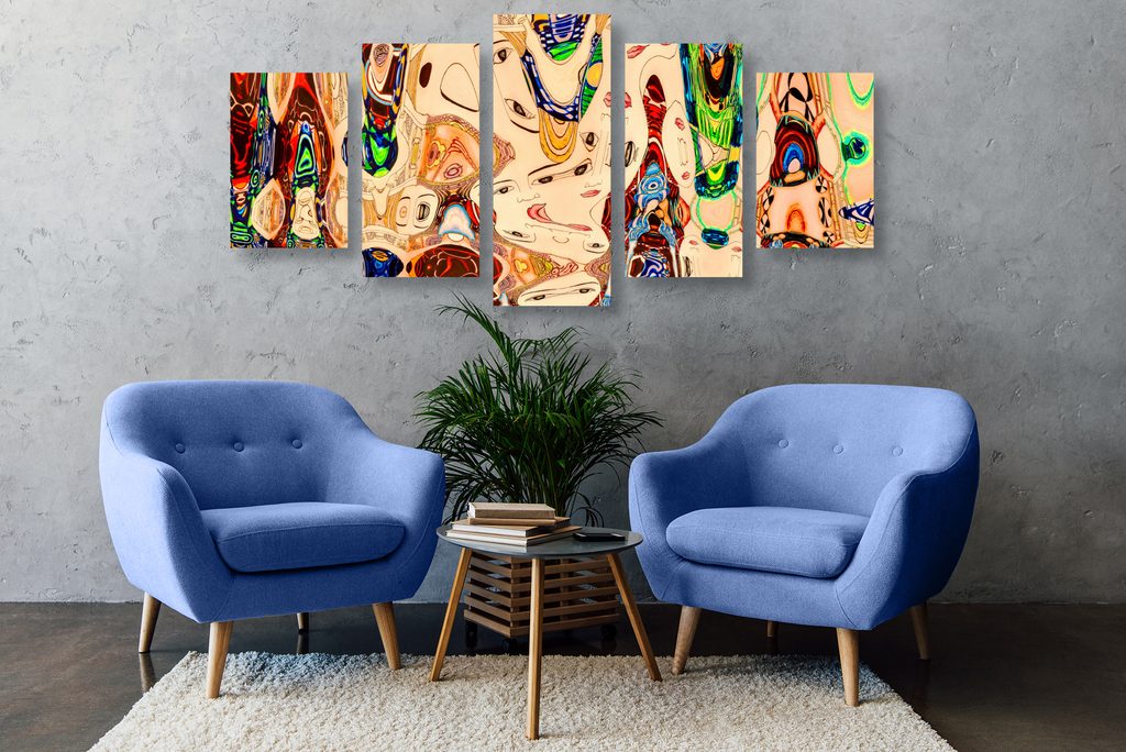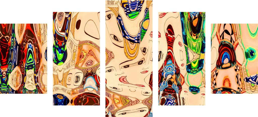 5-dielny obraz abstrakcia tvárí v pestrofarebnom prevedení