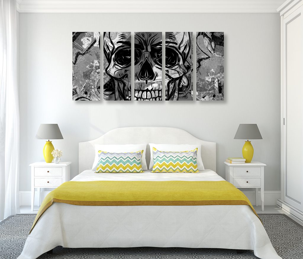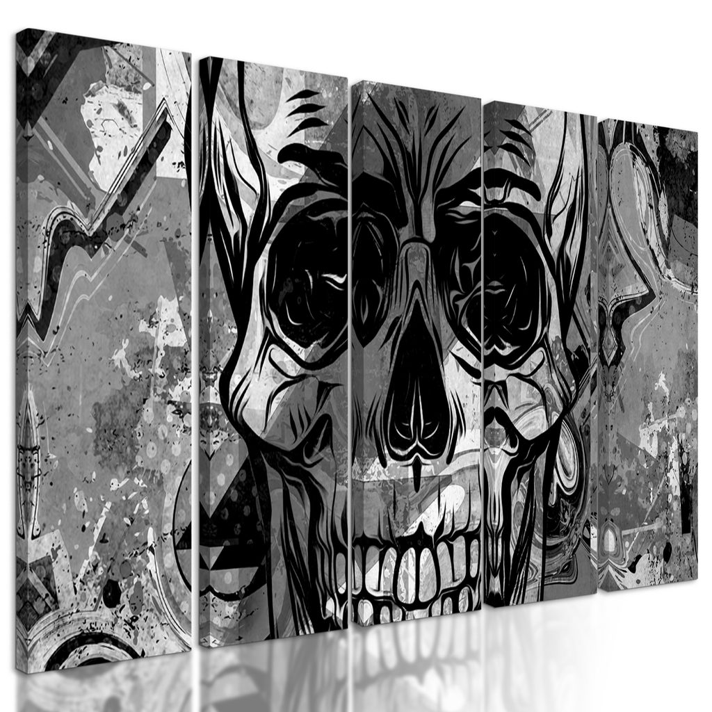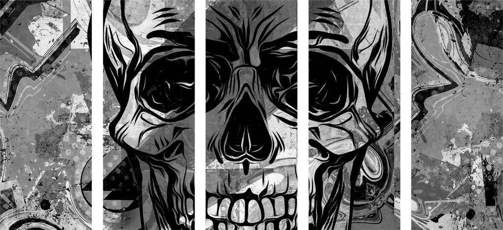 5-dielny obraz abstraktná lebka v čiernobielom prevedení