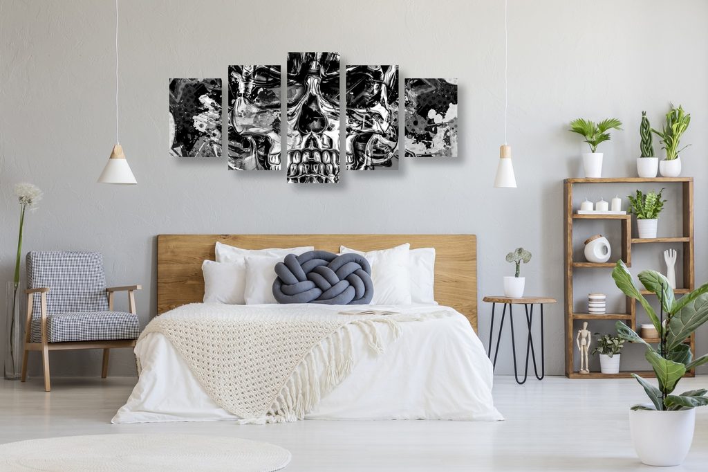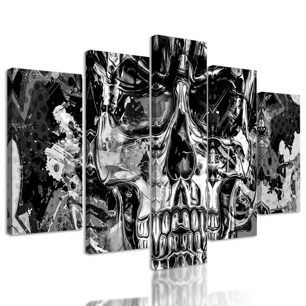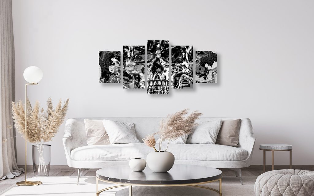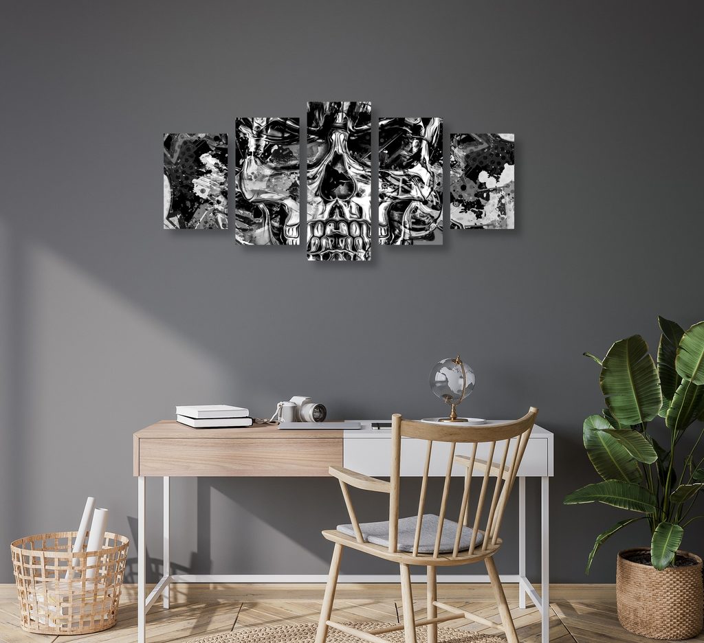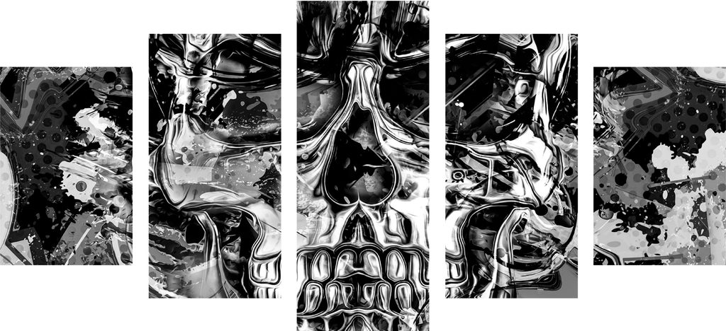 5-dielny obraz abstraktná lebka v čiernobielom prevedení