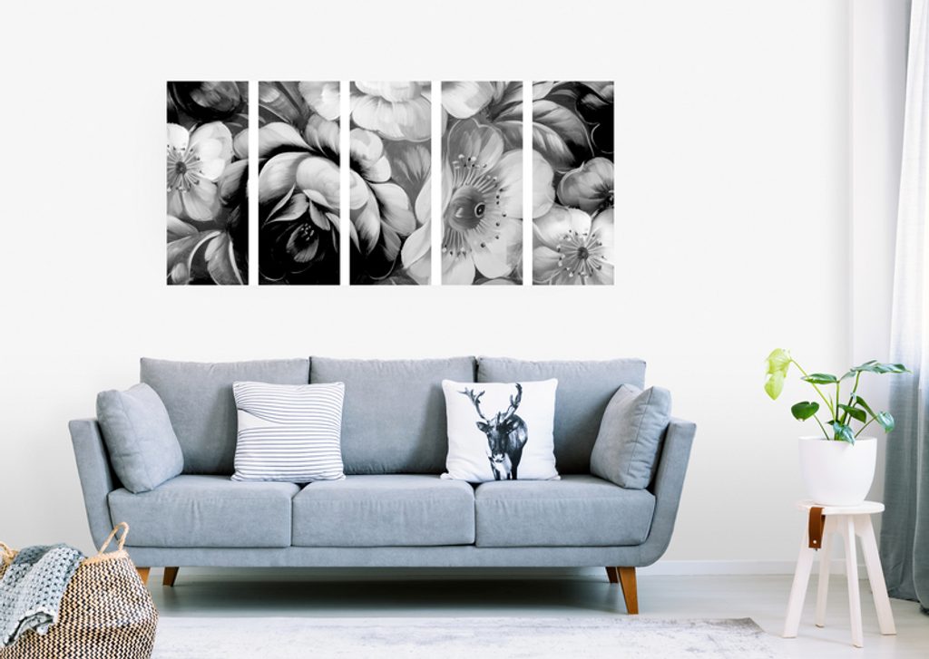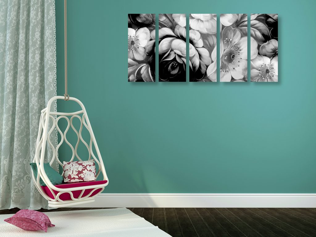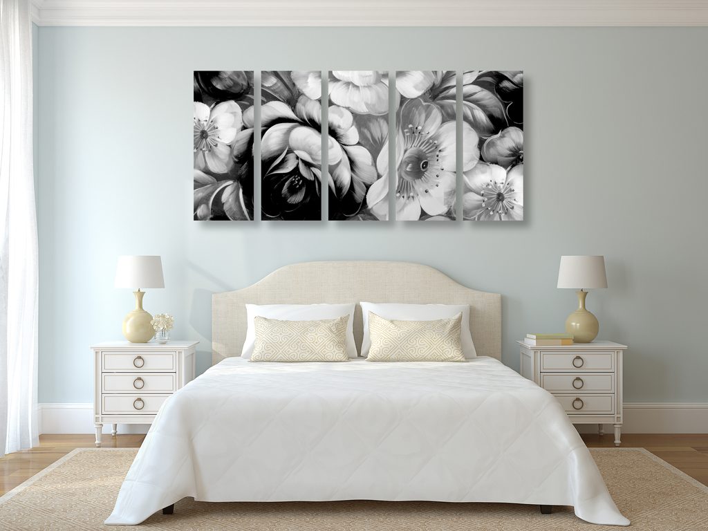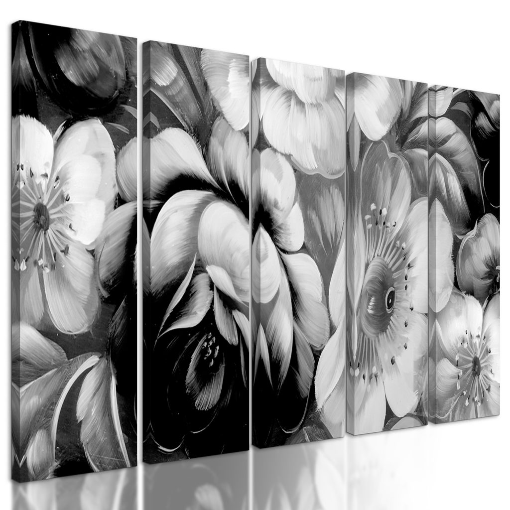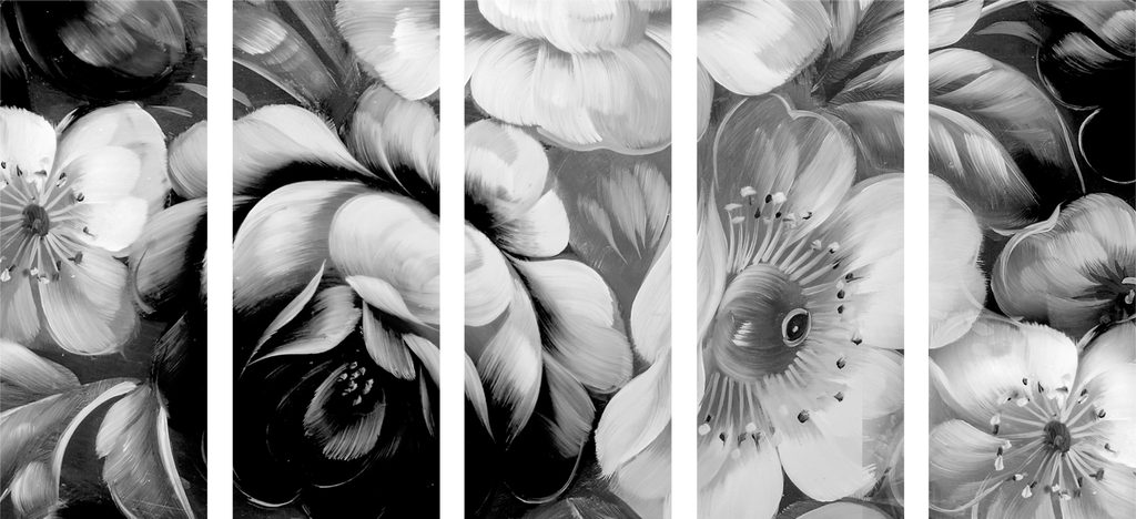 5-dielny obraz abstraktná maľba kvetín v čiernobielom prevedení