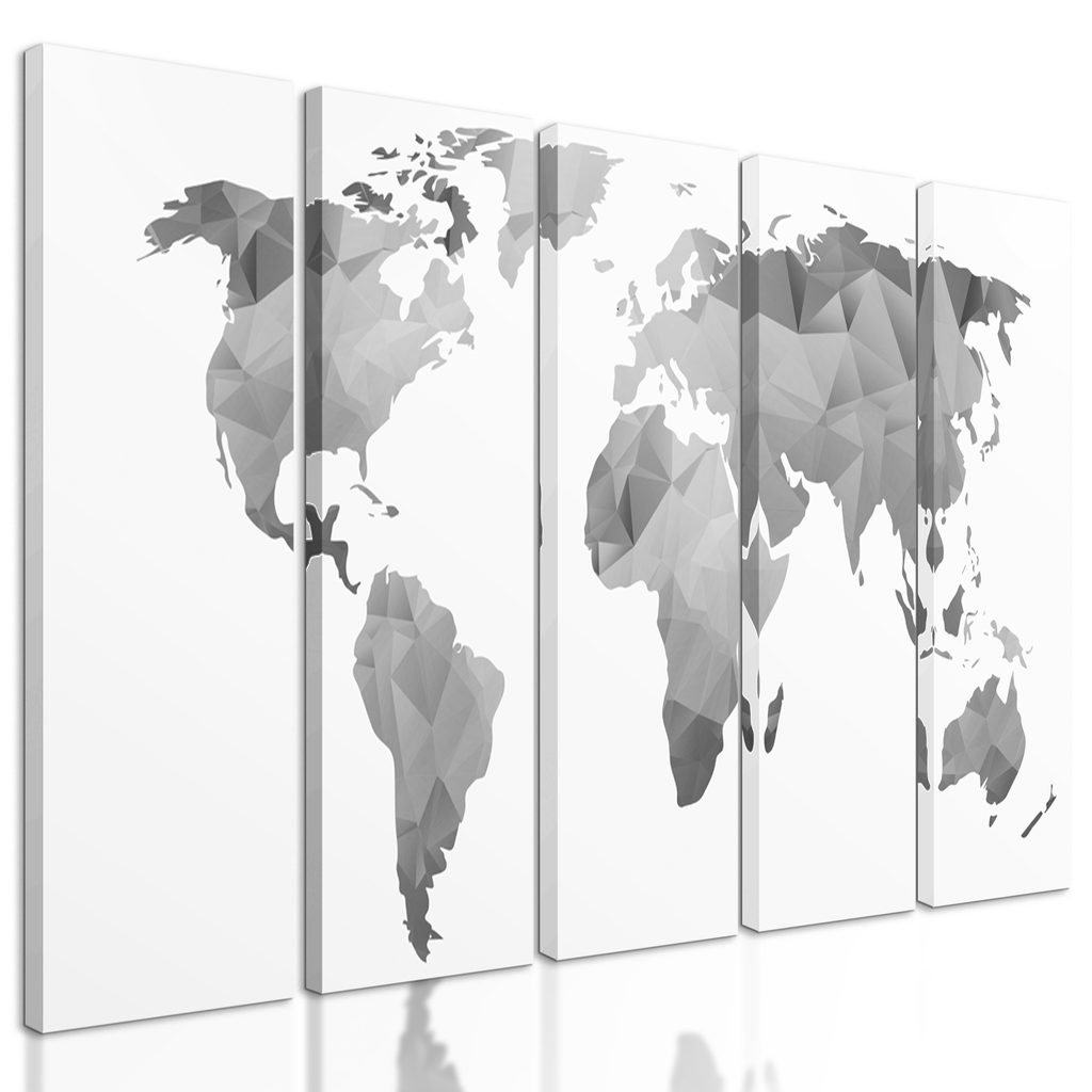 5-dielny obraz abstraktná mapa tvorená polygonmi v čiernobielom prevedení