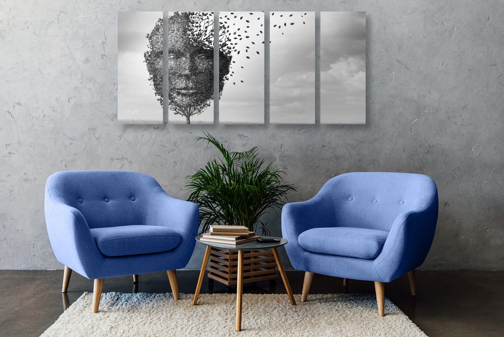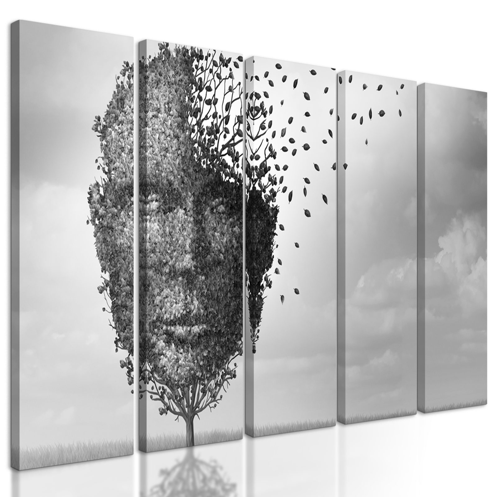 5-dielny obraz nehynúci strom života v čiernobielom prevedení