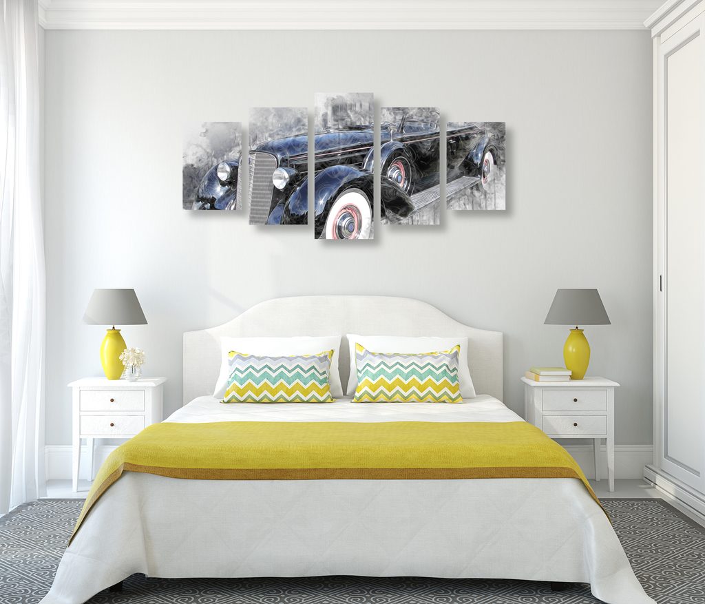 5-dielny obraz abstraktné auto