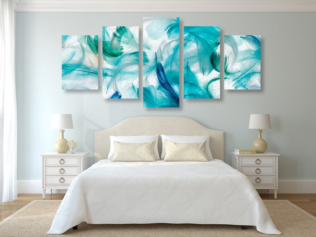 5-dielny obraz abstraktné pierka na bielom pozadí