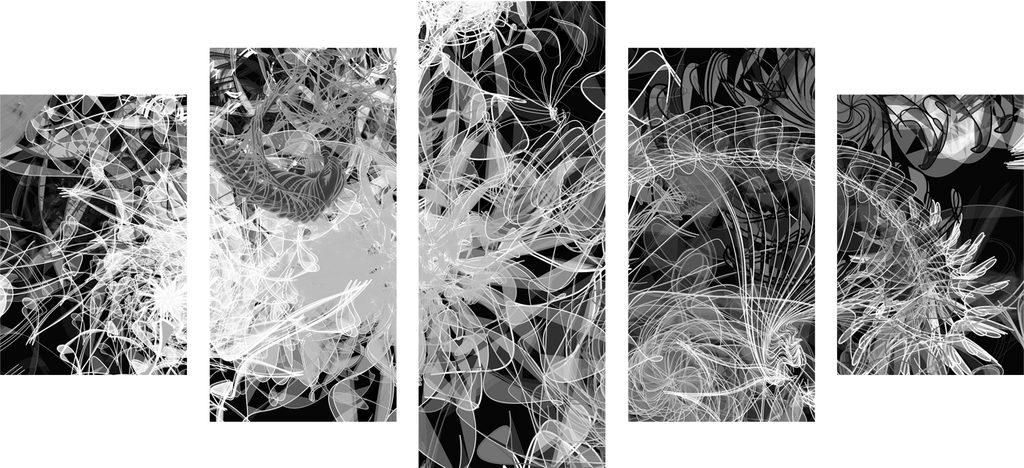 5-dielny obraz abstraktné umenie v čiernobielom prevedení