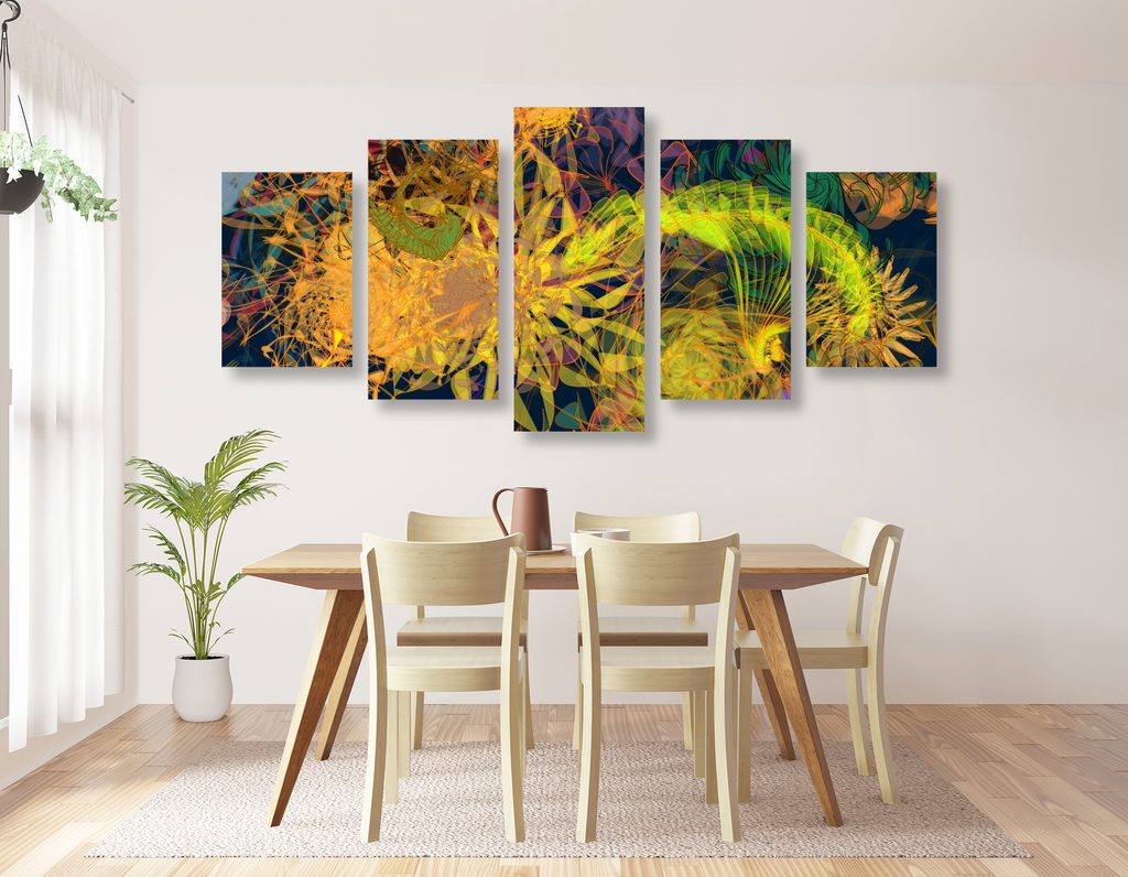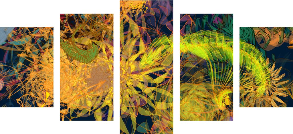 5-dielny obraz výnimočný rakytník v abstraktnom prevedení