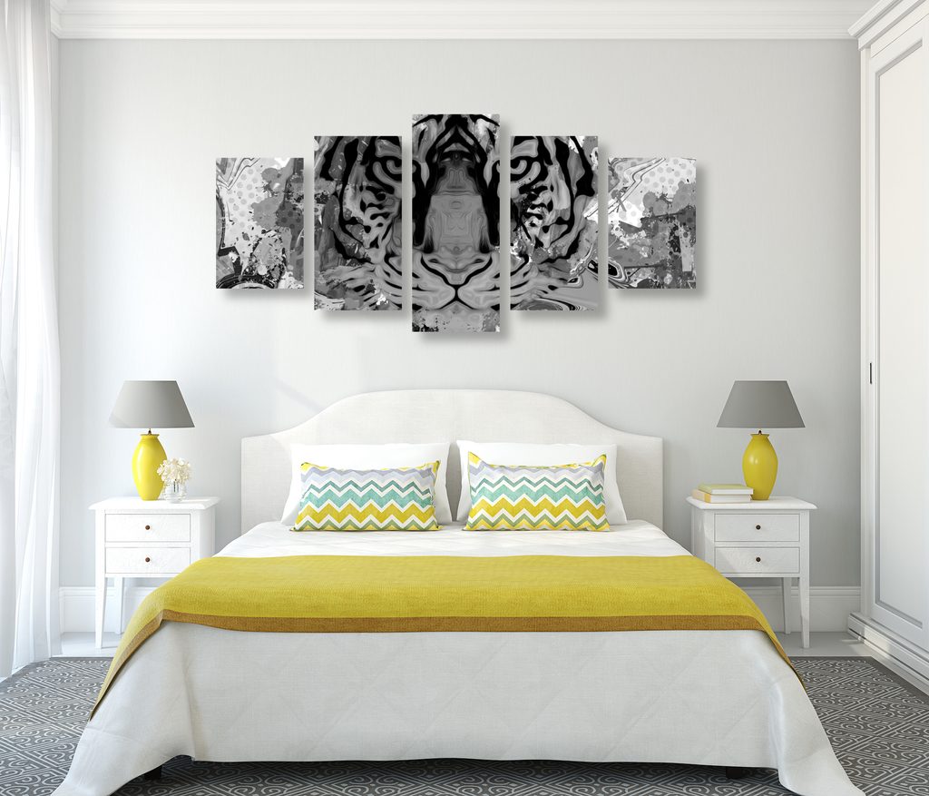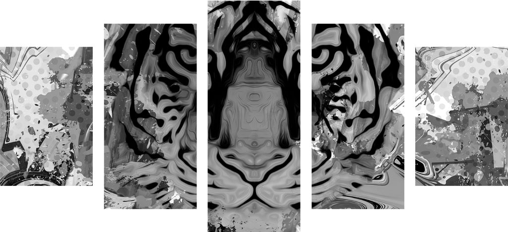 5-dielny obraz abstraktný tiger v čiernobielom prevedení