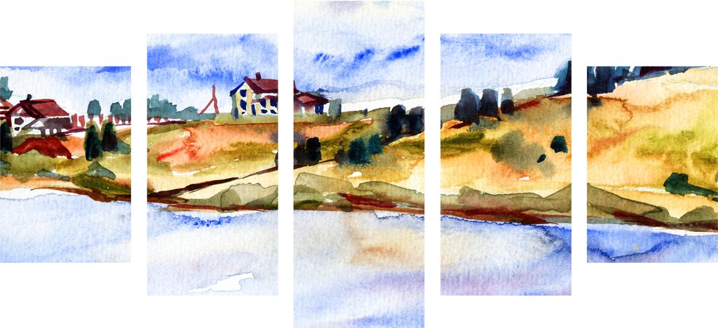 5-dielny obraz oáza plná zelene v akvarelovom prevedení