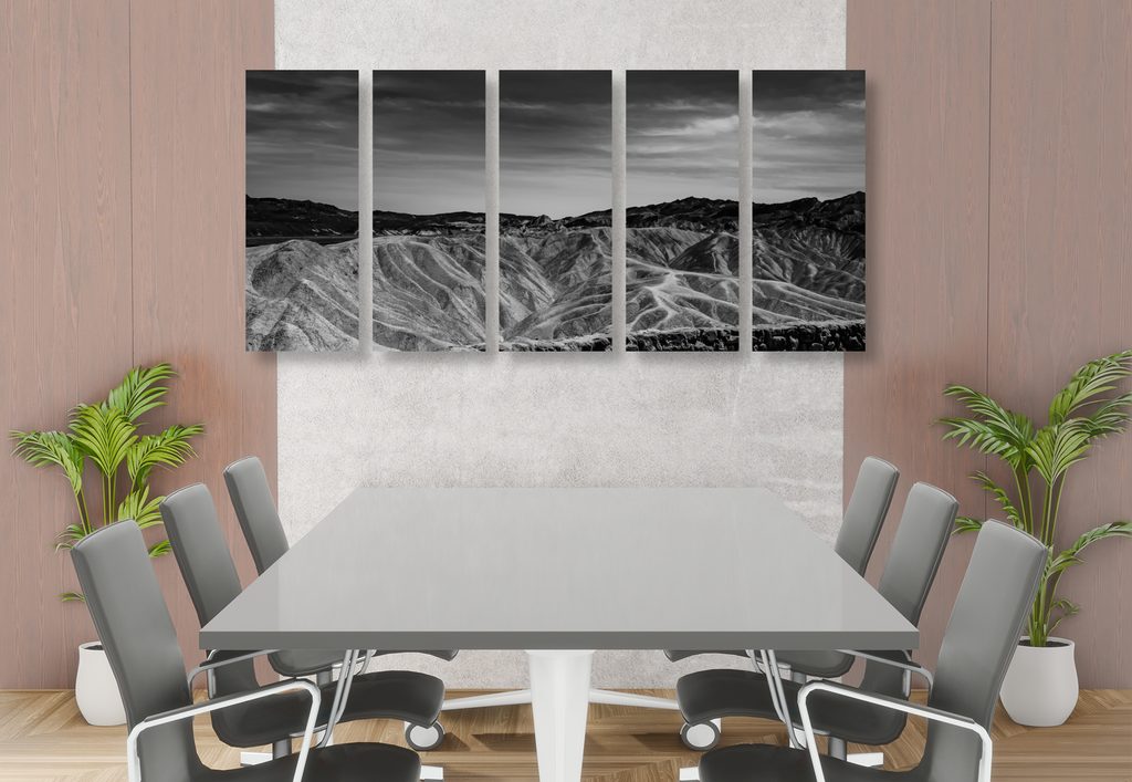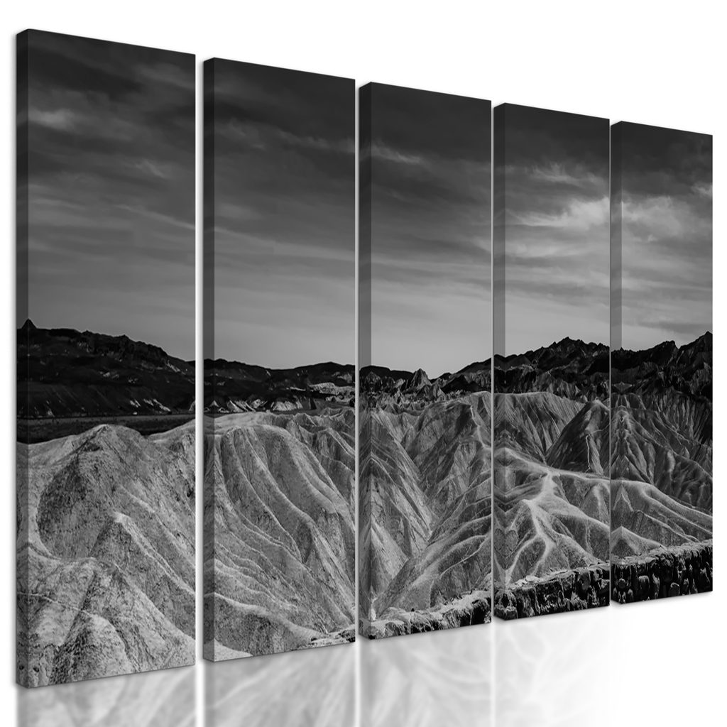 5-dielny obraz americké údolie smrti v čiernobielom prevedení
