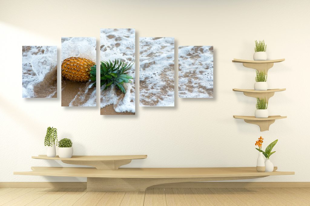 5-dielny obraz ananás na pláži