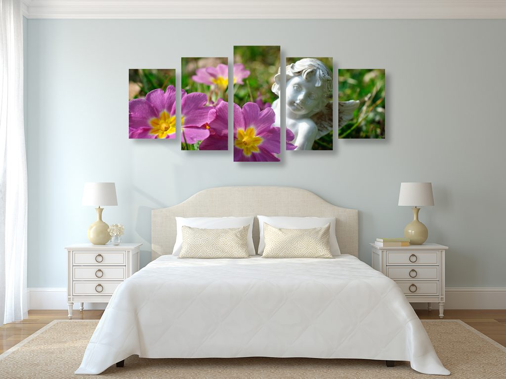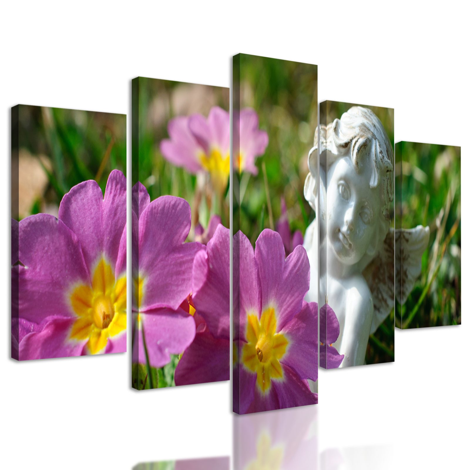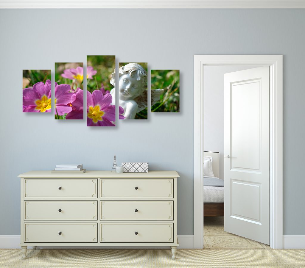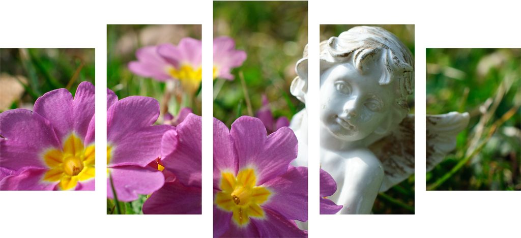 5-dielny obraz záhradný anjelik v čiernobielom prevedení