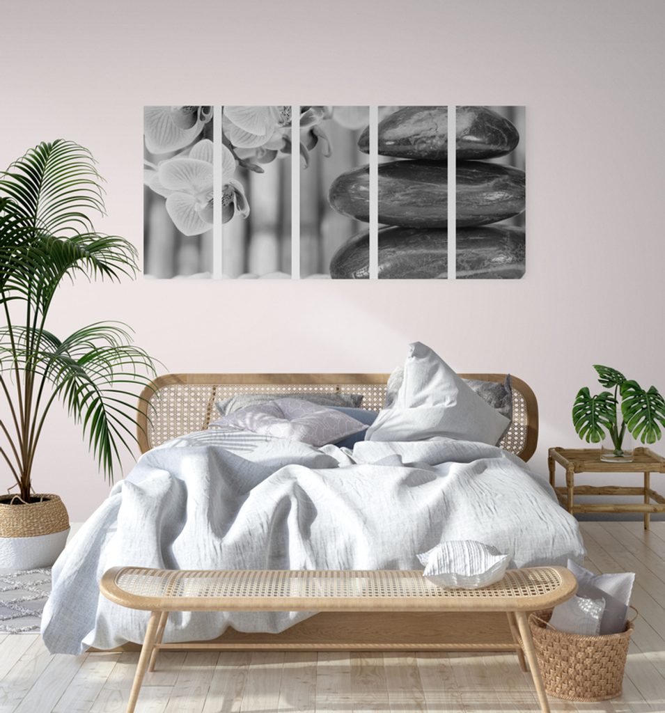 5-dielny obraz bambusová Zen záhrada v čiernobielom prevedení