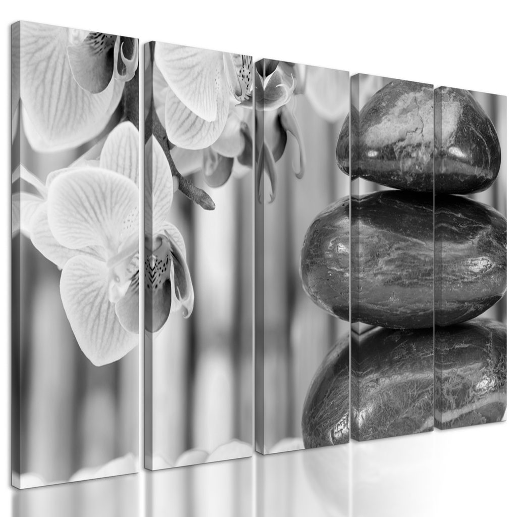 5-dielny obraz fialová orchidea v čiernobielom prevedení