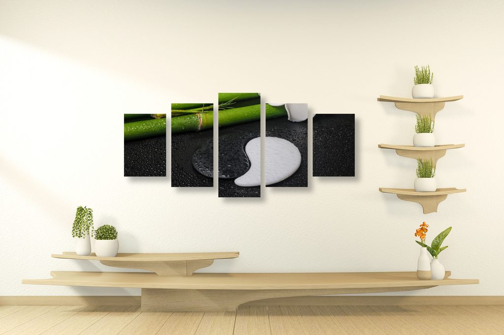 5-dielny obraz bambusové zátišie so symbolom Jin a Jang