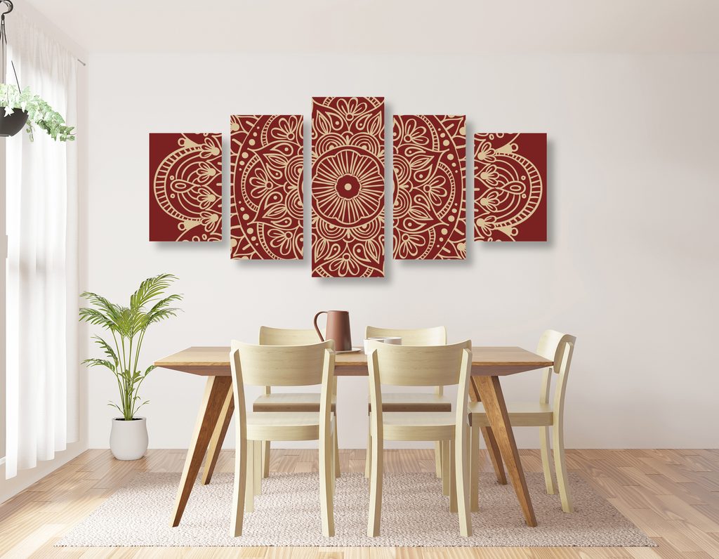 5-dielny obraz biela Mandala doplnená bordovou farbou