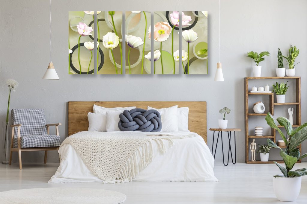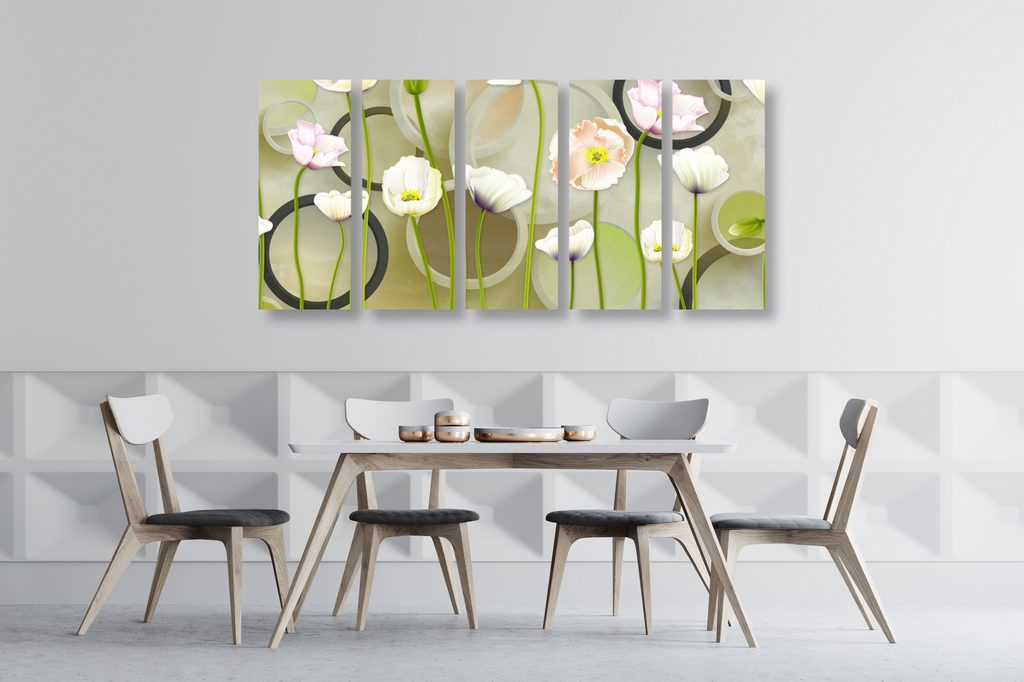 5-dielny obraz elegantné kvety na abstraktnom pozadí
