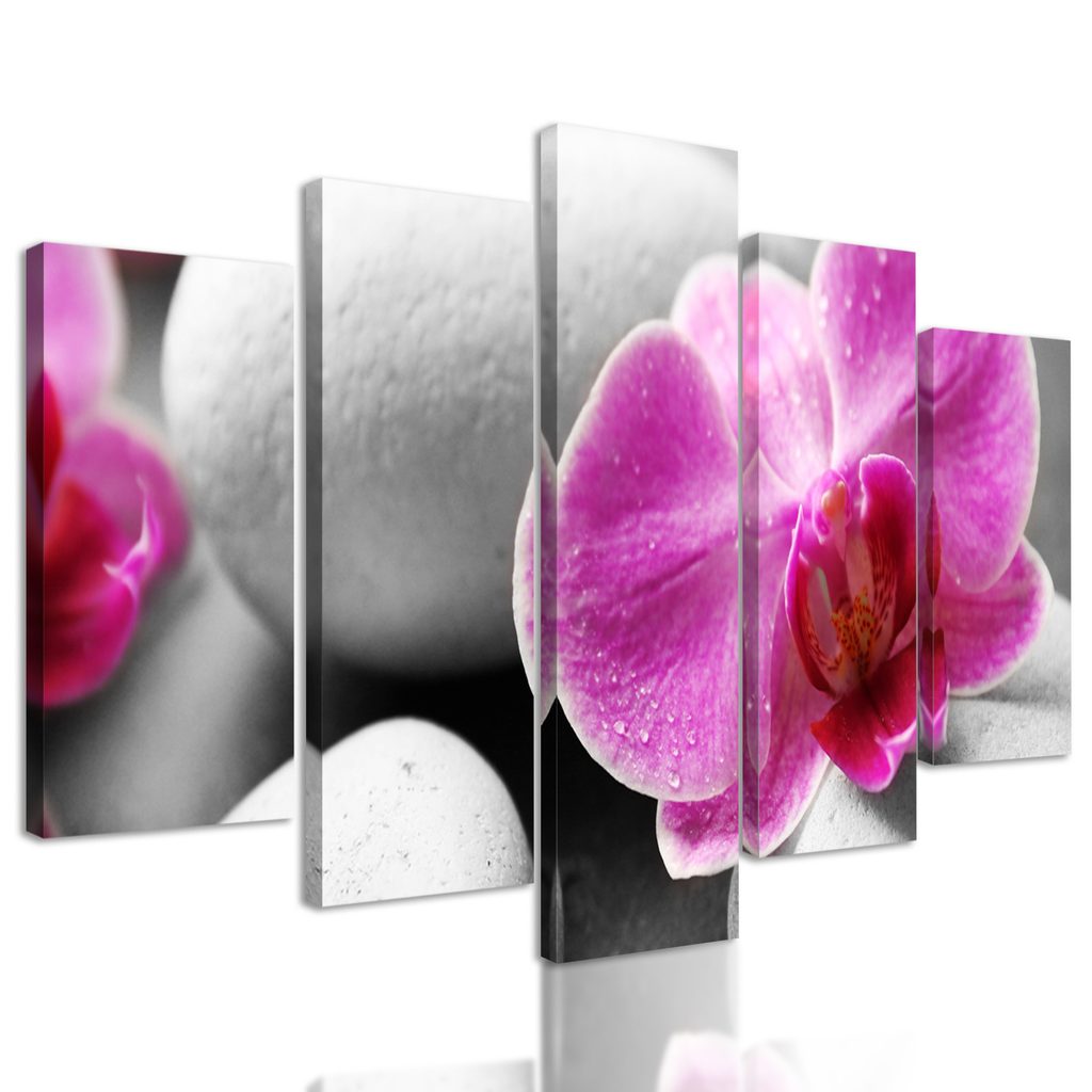 5-dielny obraz jemná kvetinová Mandala v čiernobielom prevedení