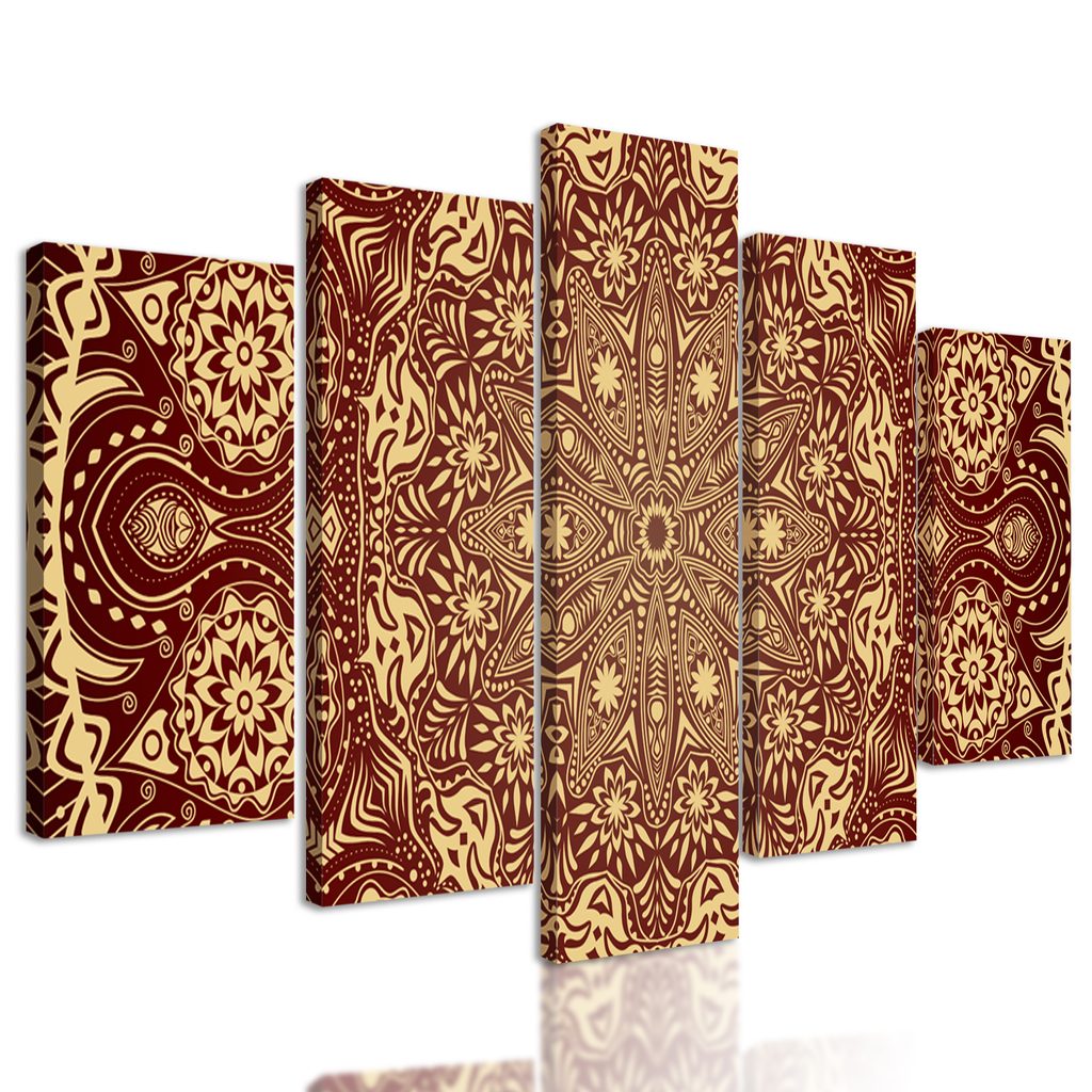 5-dielny obraz starodávna Mandala v čiernobielom prevedení
