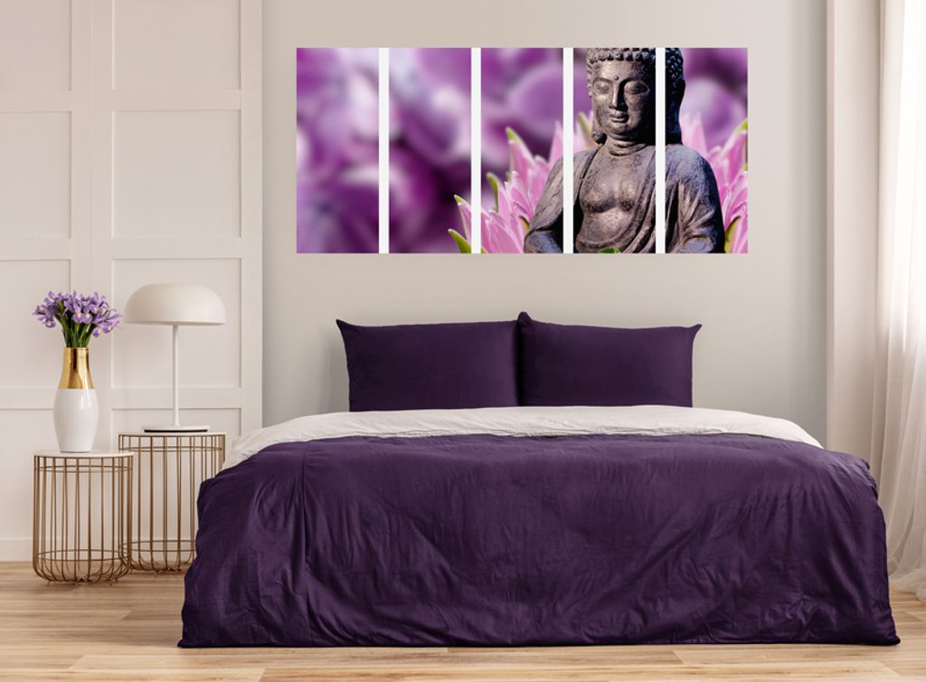 5-dielny obraz Budha meditujúci v kvetinovej záhrade