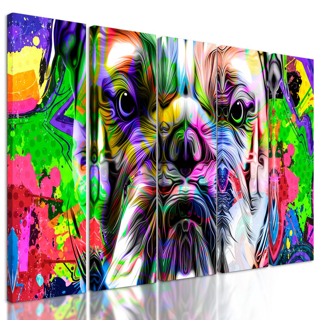 5-dielny obraz buldog v pop art prevedení