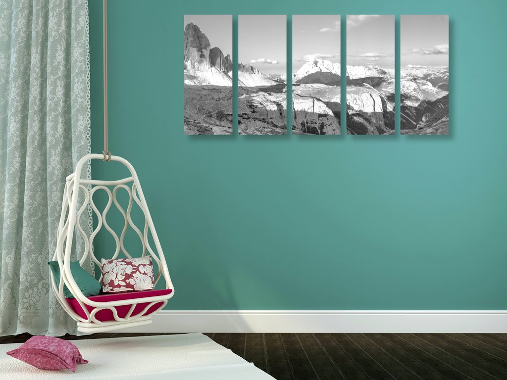 5-dielny obraz čarovný výhľad v čiernobielom prevedení
