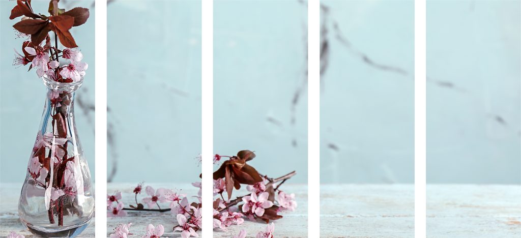 5-dielny obraz vtáčik na vetvičke s folklórnym motívom