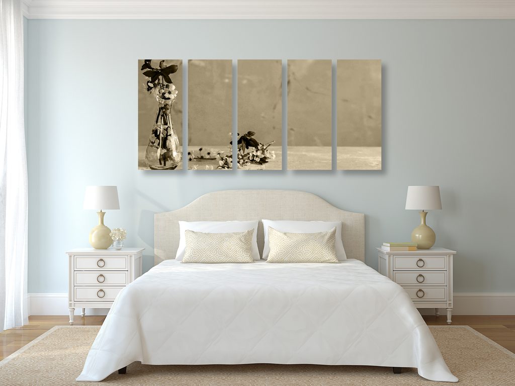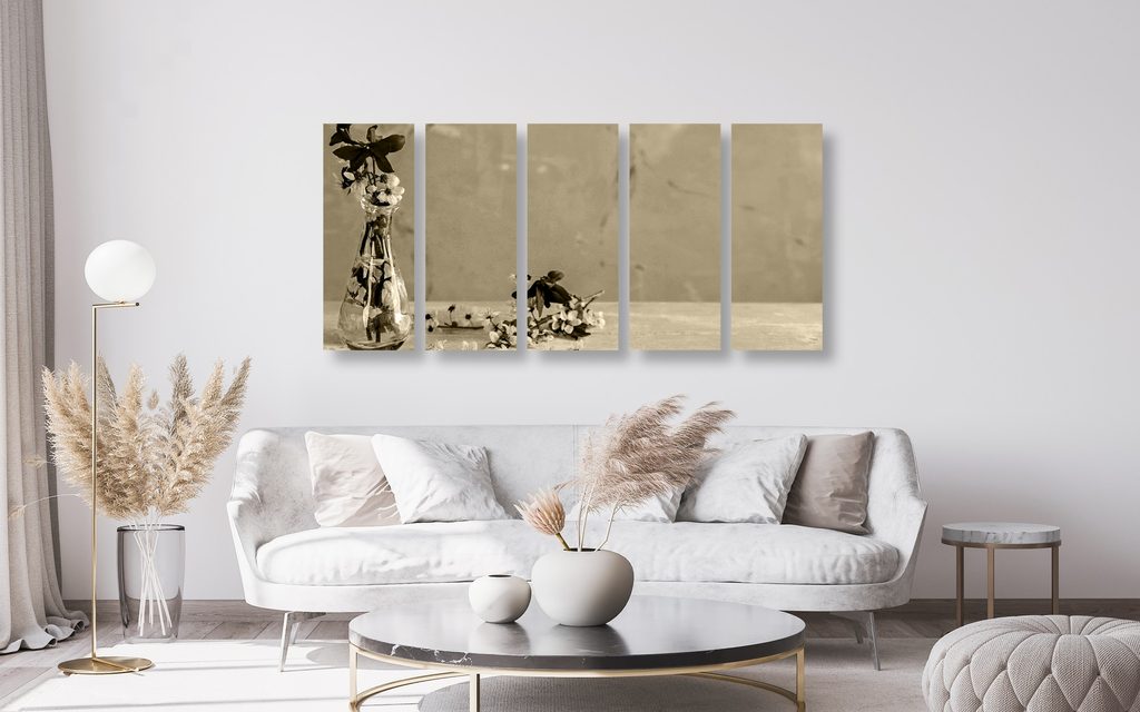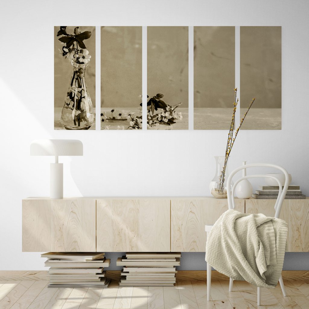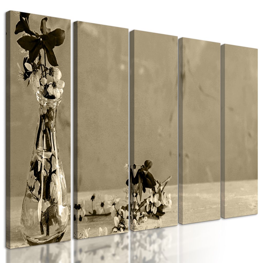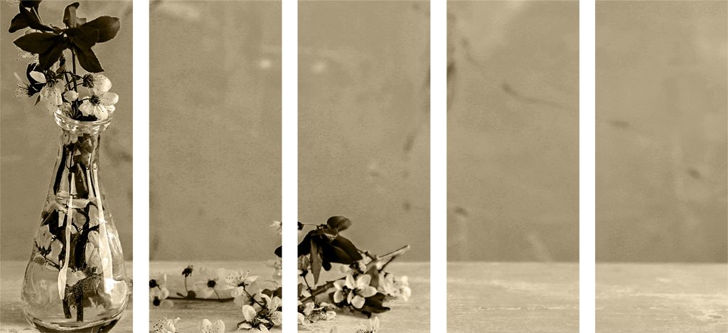 5-dielny obraz čerešňové zátišie v sépiovom prevedení