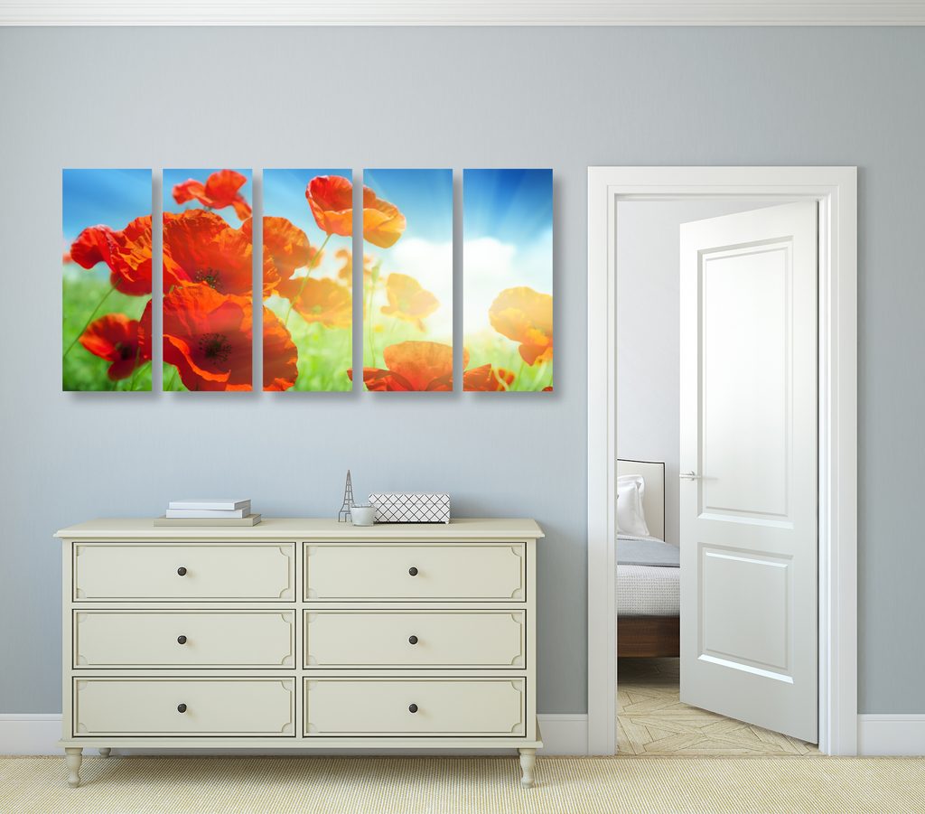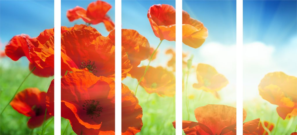 5-dielny obraz červené maky