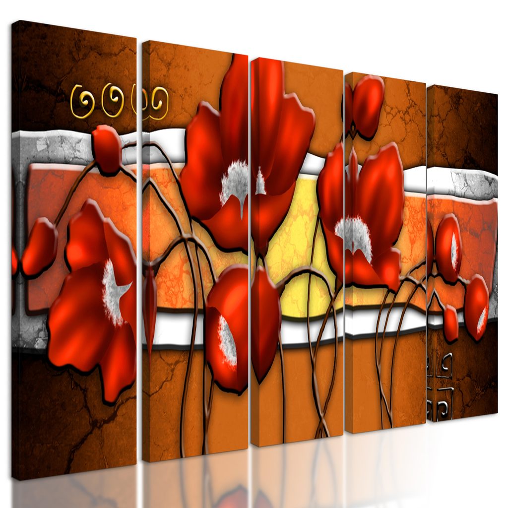 5-dielny obraz červené maky vo vintage prevedení