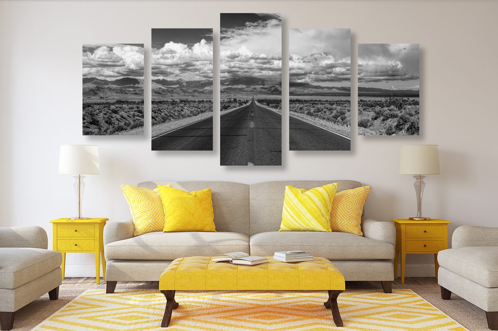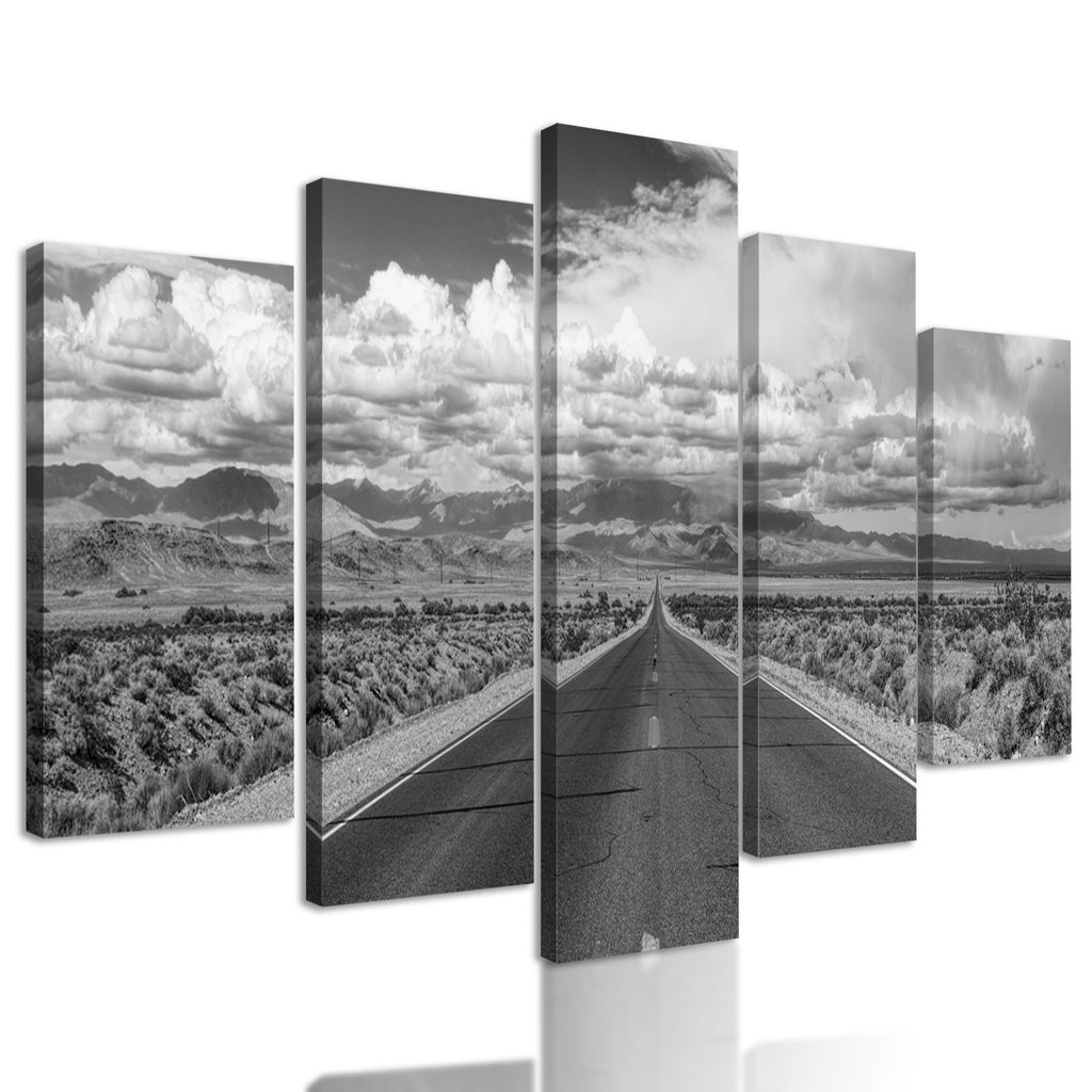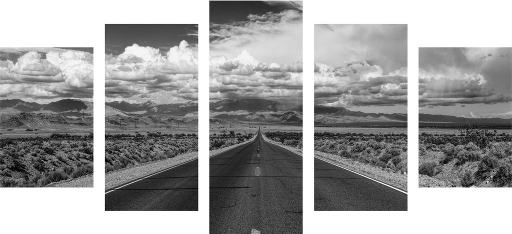 5-dielny obraz cesta pušťou v čiernobielom prevedení