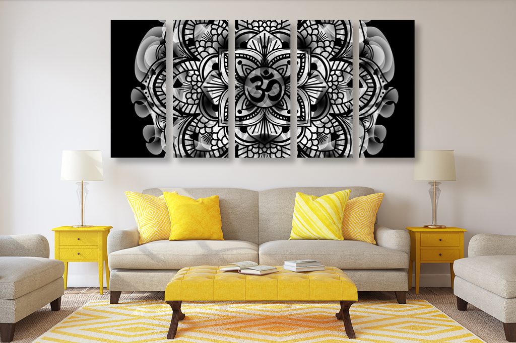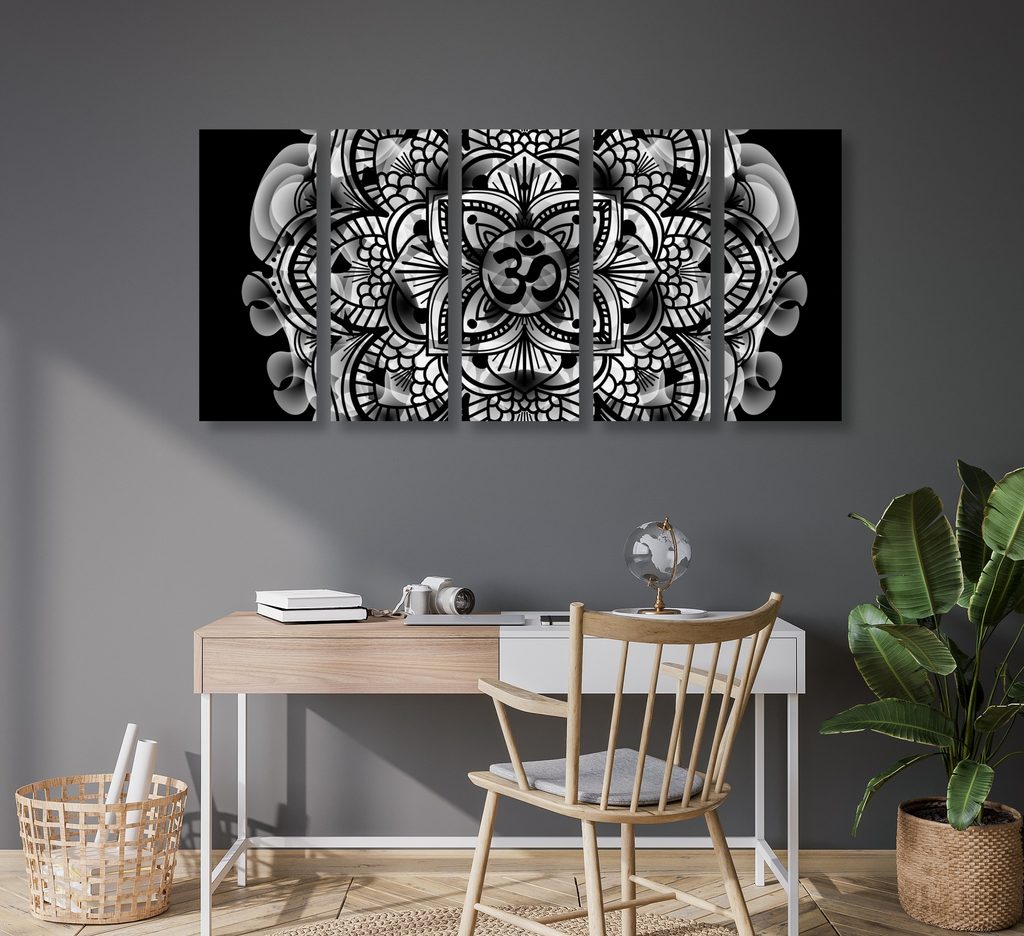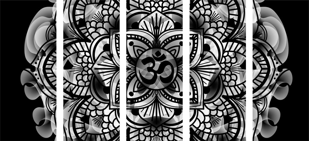 5-dielny obraz Mandala na telovom pozadí v čiernobielom prevedení