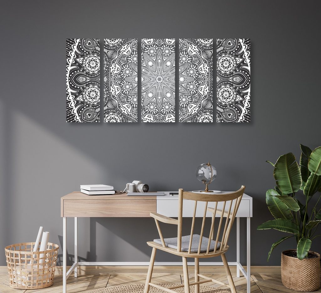 5-dielny obraz majestátna hora v čiernobielom prevedení