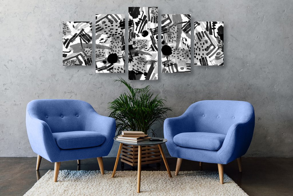 5-dielny obraz čiernobiela neobyčajná abstrakcia