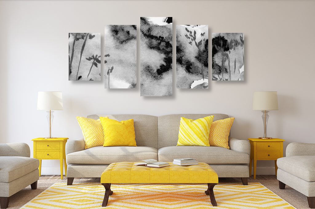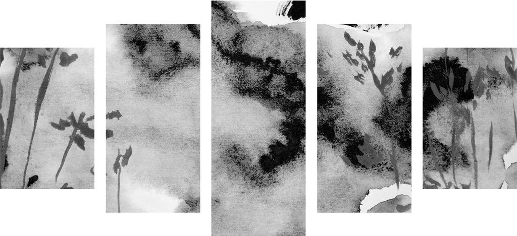 5-dielny obraz čiernobiela obloha v akvarelovom prevedení