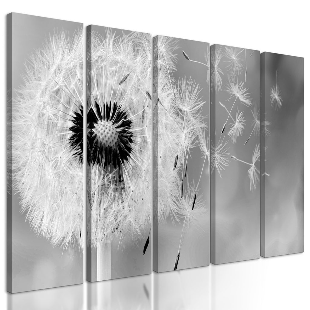 5-dielny obraz nádherné kvety s tajomným pozadím v čiernobielom prevedení