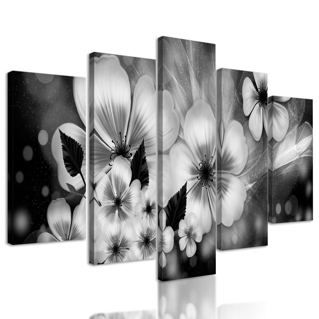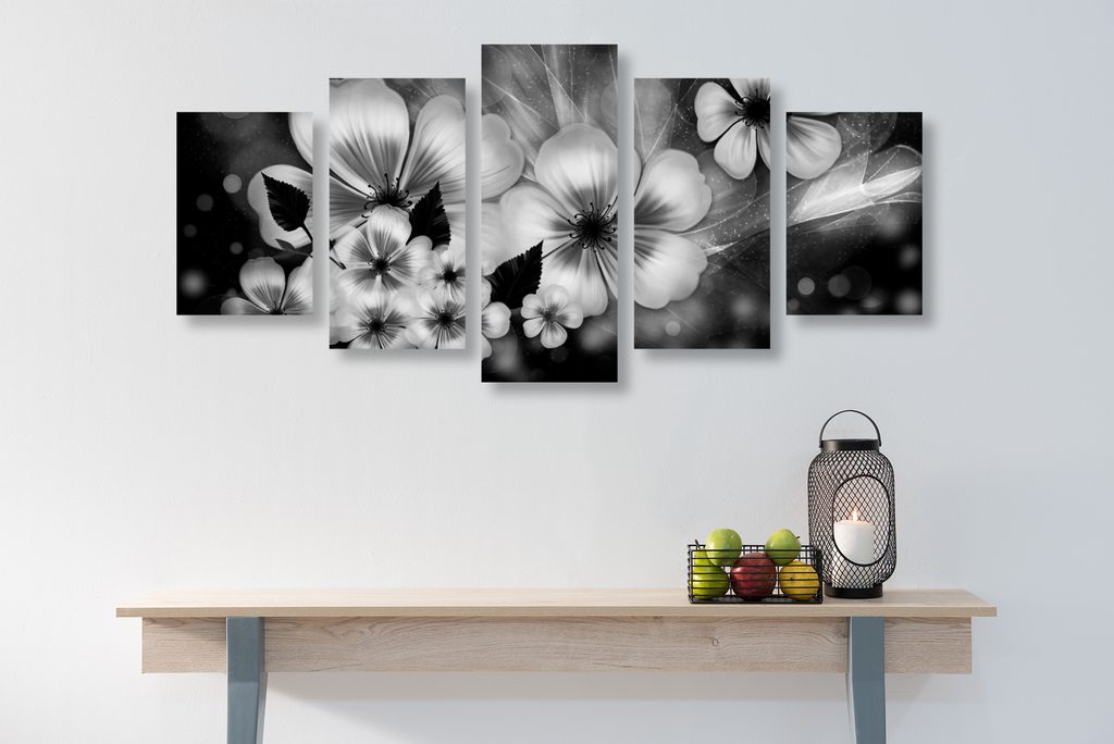 5-dielny obraz čiernobiele kvety vo vintage prevedení