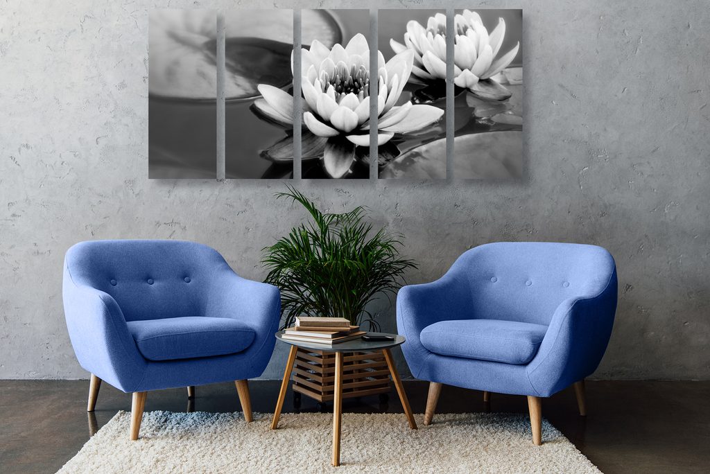 5-dielny obraz čiernobiele lekno v rieke