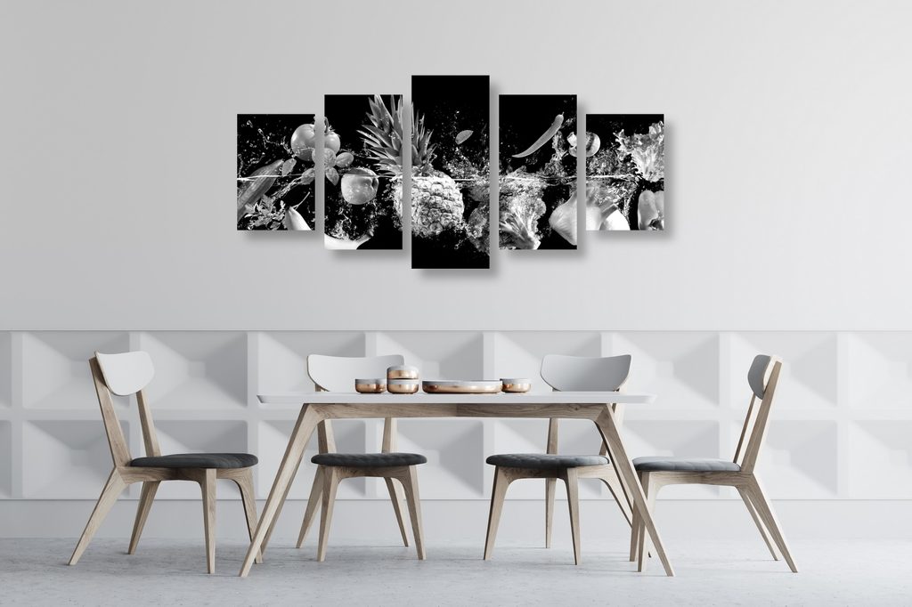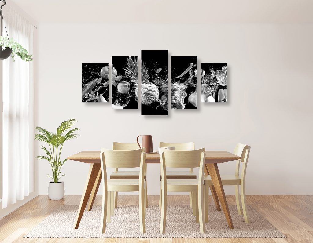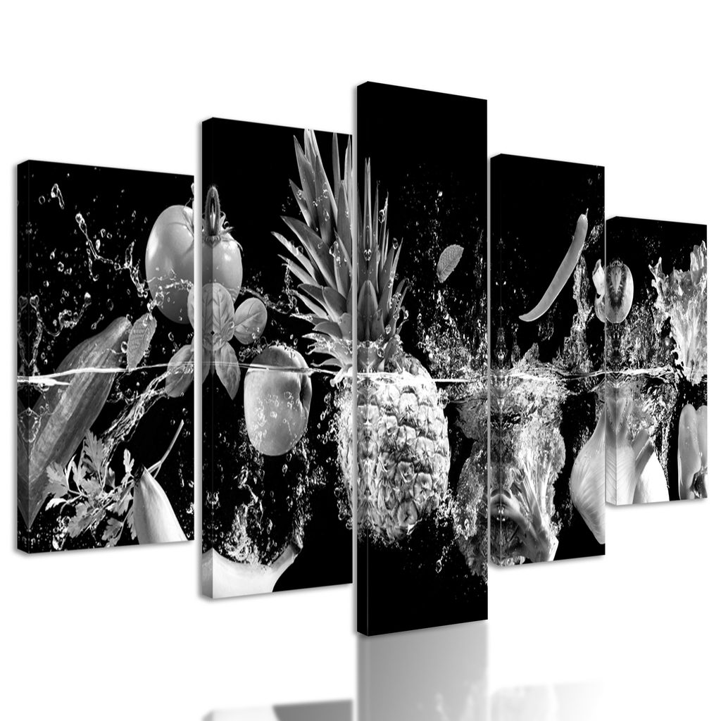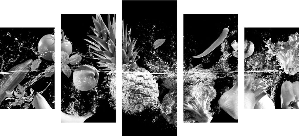 5-dielny obraz čiernobiele ovocie vo vode