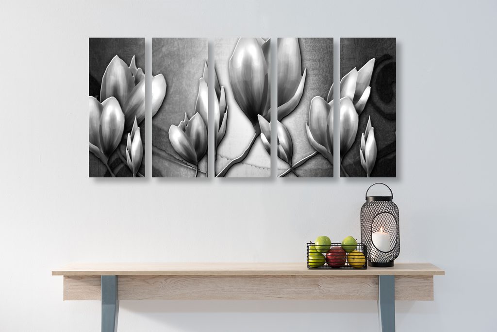 5-dielny obraz nočný motýľ v čiernobielom prevedení