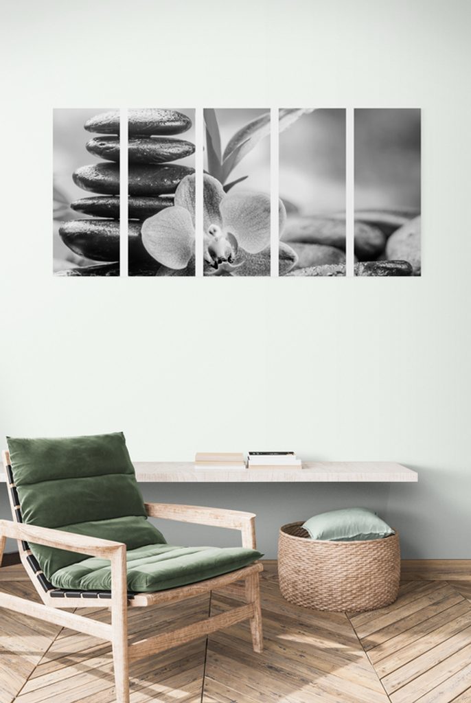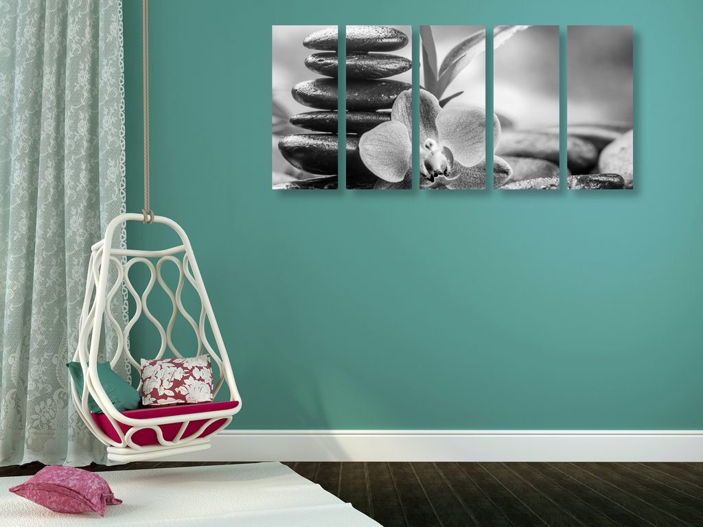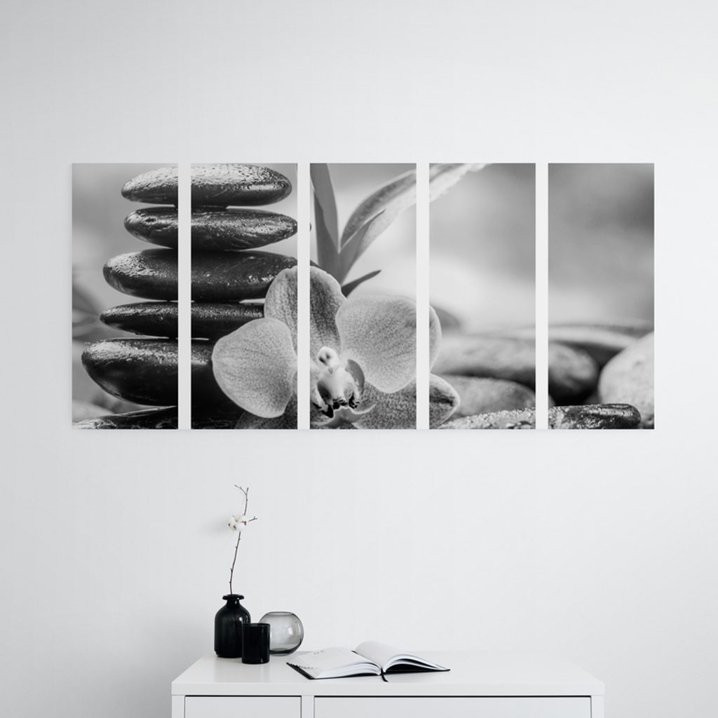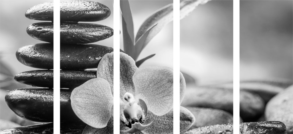 5-dielny obraz čiernobiele wellnes kamene v srdci prírody
