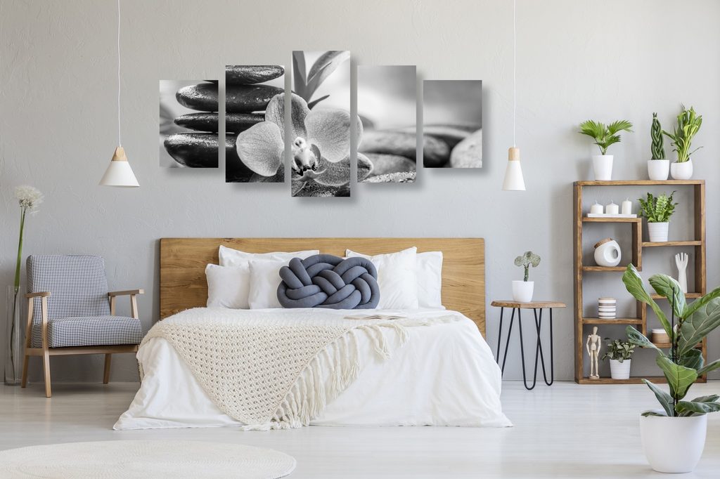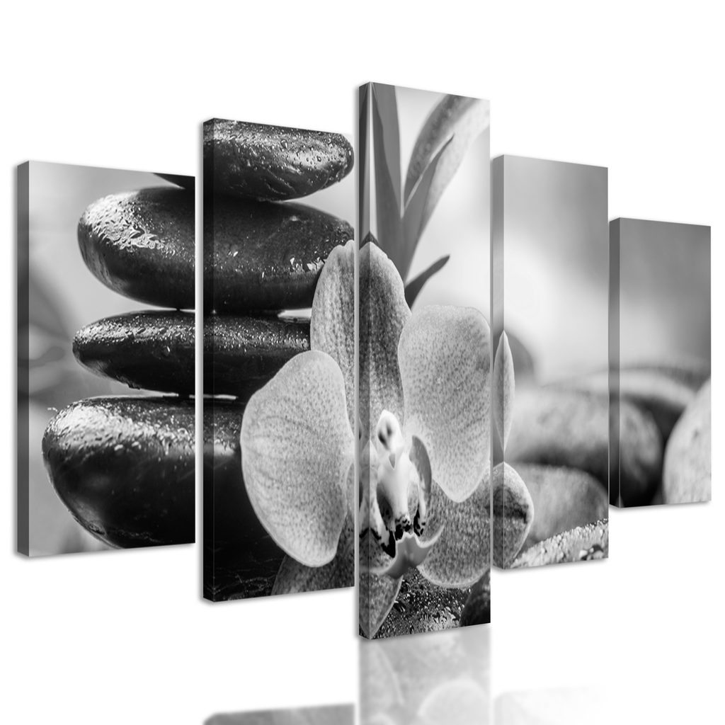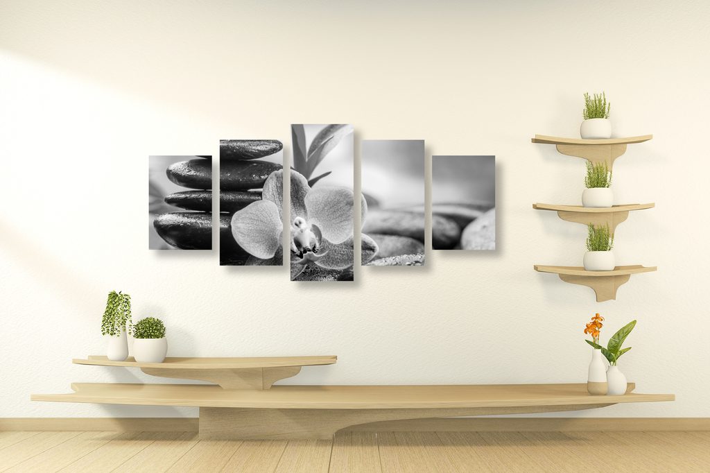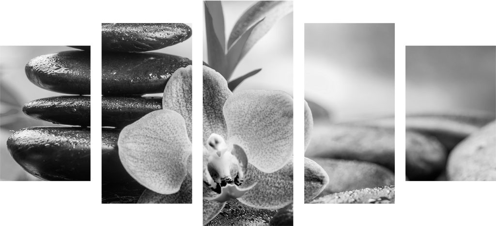 5-dielny obraz čiernobiele wellnes kamene v srdci prírody