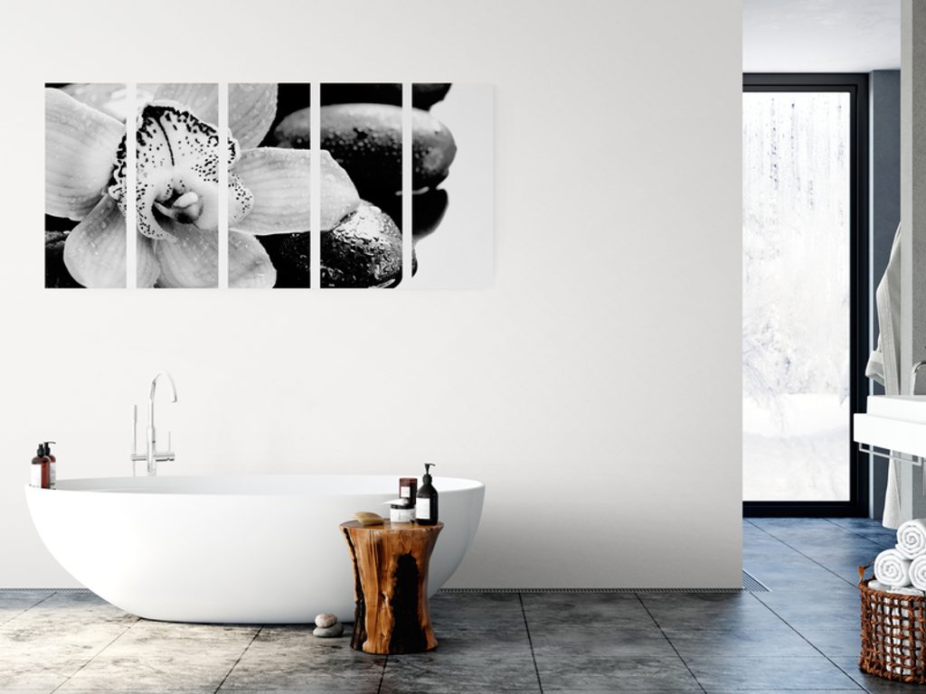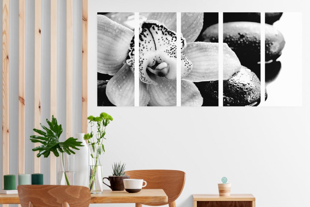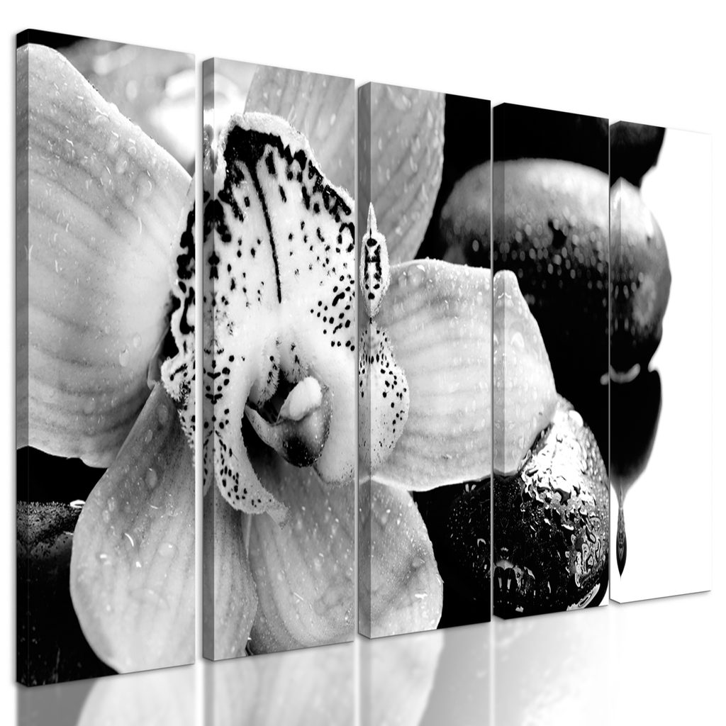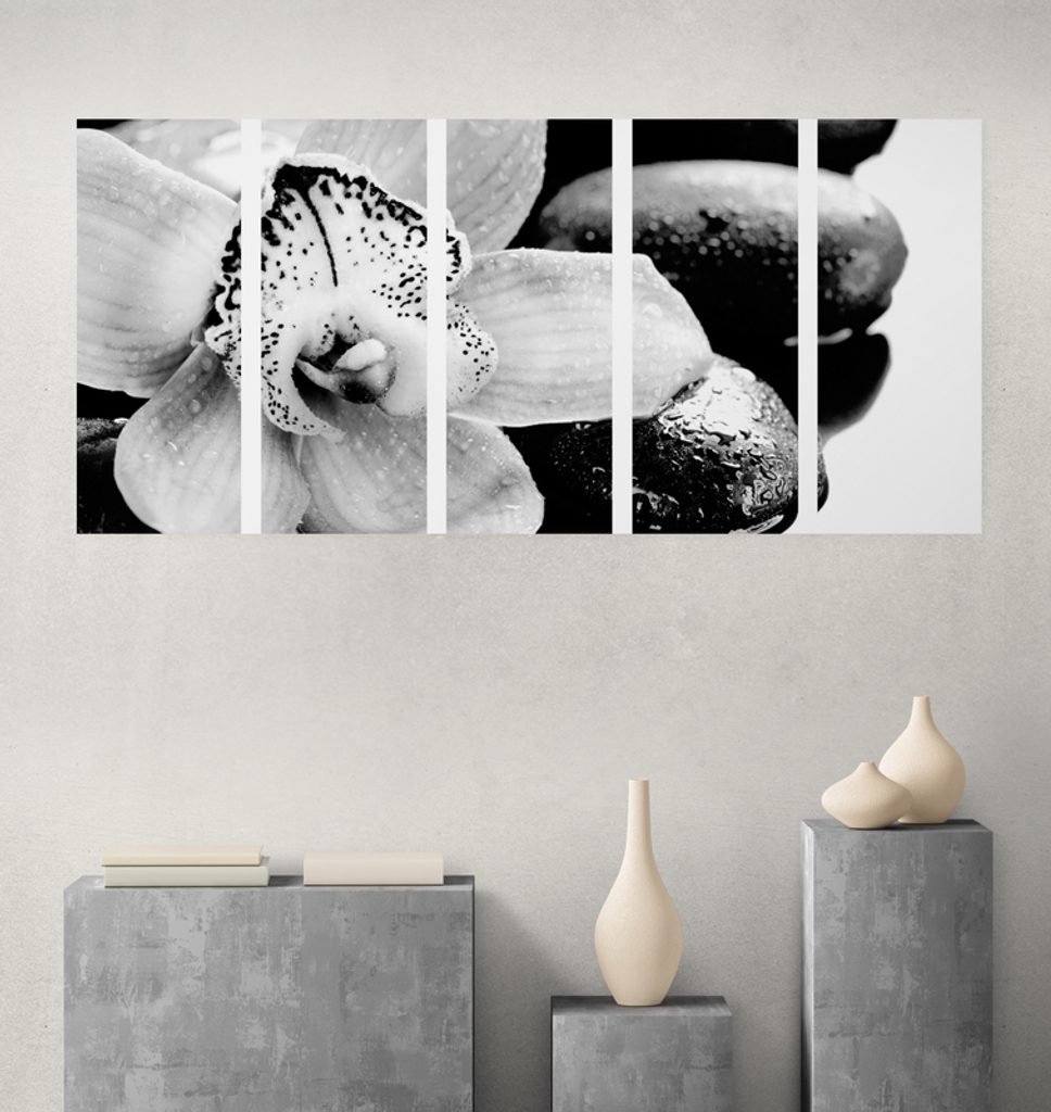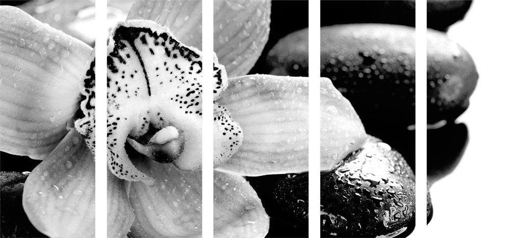 5-dielny obraz čiernobiely kvet orchidei