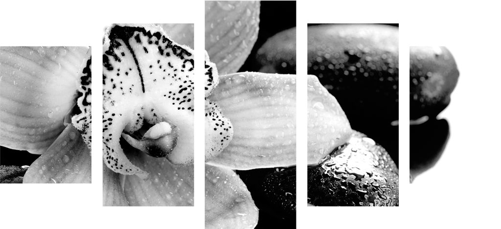 5-dielny obraz kvetinová Mandala v čiernobielom prevedení