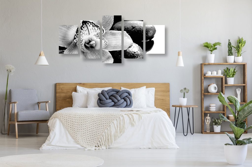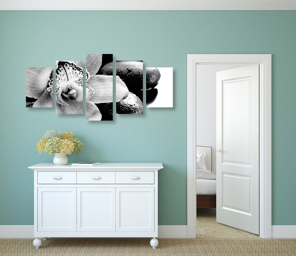 5-dielny obraz nádherný pohľad na letnú prírodu v čiernobielom prevedení