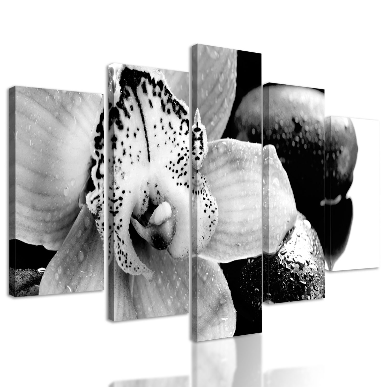 5-dielny obraz rozkvitnutá lúka v čiernobielom prevedení