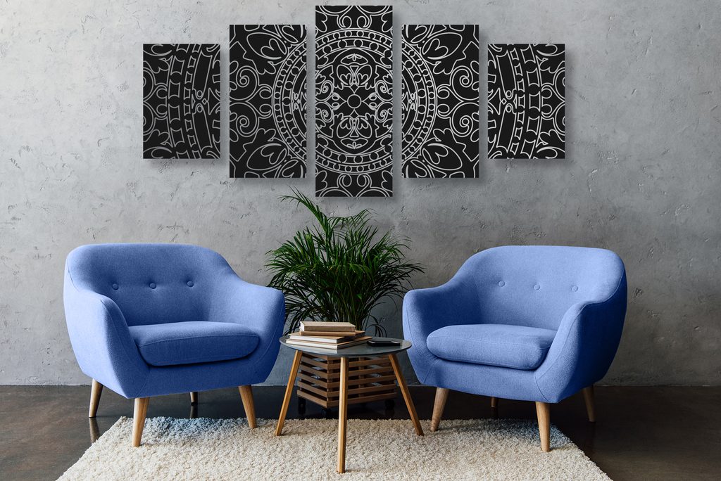 5-dielny obraz čiernobiely luxusný oranament