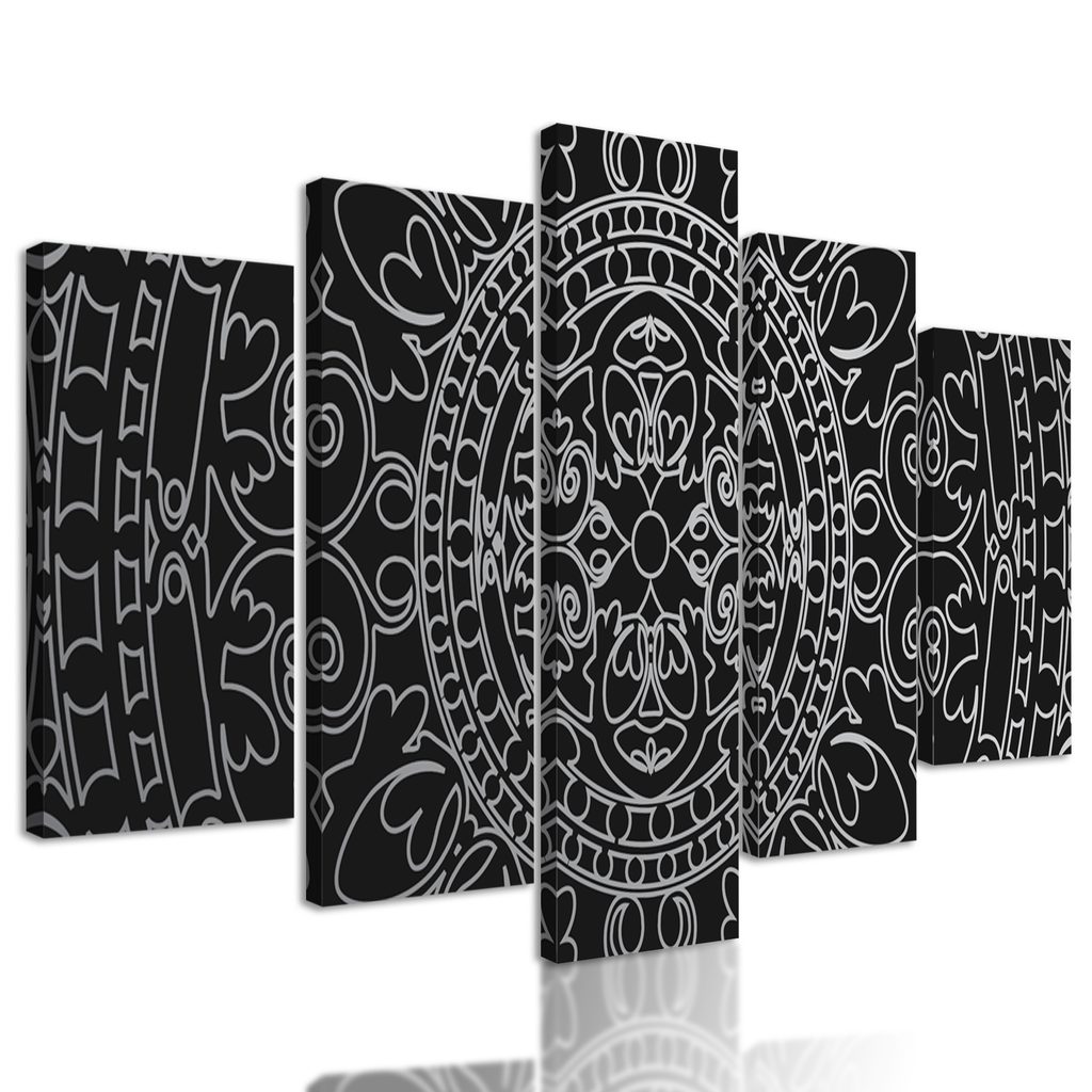 5-dielny obraz nevšedná mandala v čiernobielom prevedení